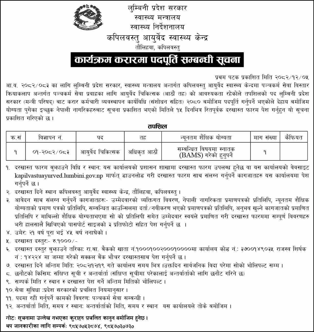 कार्यक्रम करार चिकित्सकको पदपुर्ति सम्बन्धी सूचना