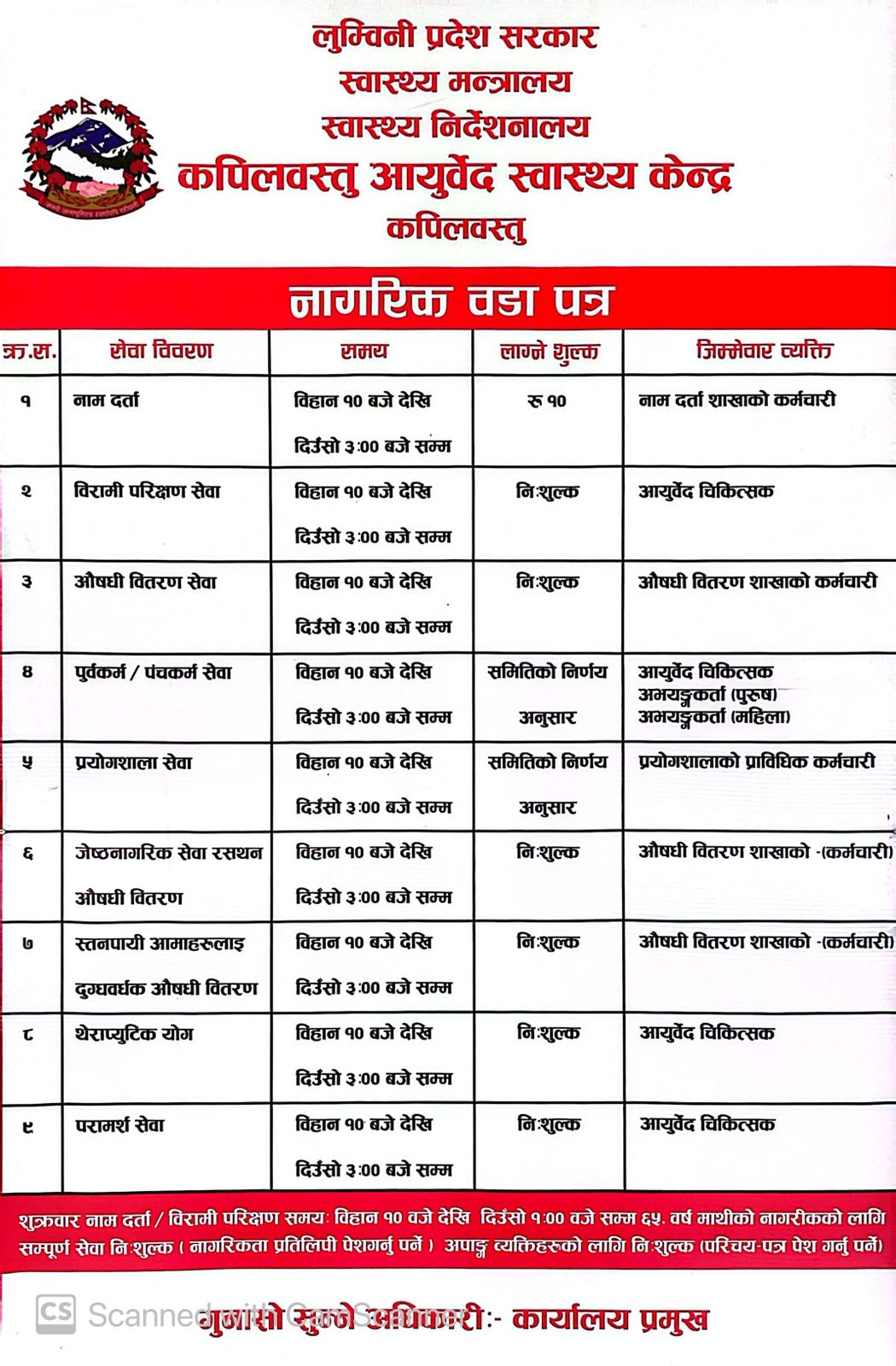 कपिलवस्तु आयुर्वेद स्वास्थ्य केन्द्र, तौलिहवा कपिलवस्तु ।